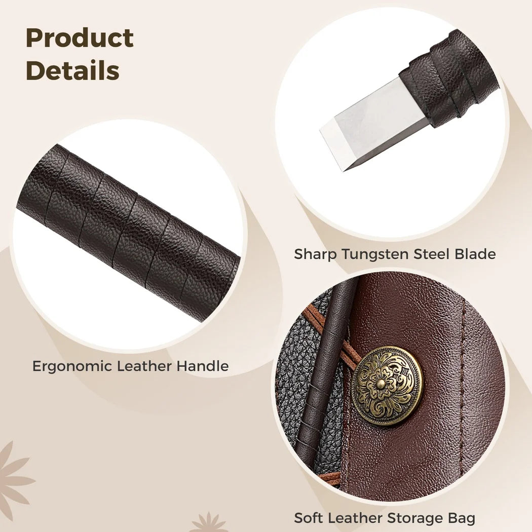 - Ergonomic Leather-wrapped Handle: The ergonomically designed handle is made of hard carbon steel that is strong enough, and it is wrapped in leather, which provides extra comfort and steady control of the chisel, making carving easy and simple.